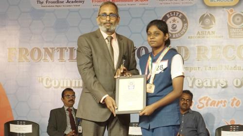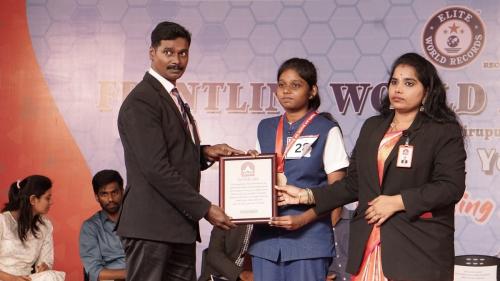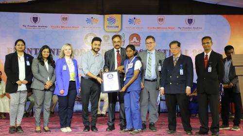 In an awe-inspiring display of artistic ingenuity and a powerful message of global unity, Dhanyaasri, an immensely talented Grade X student from Frontline Millennium School achieved an extraordinary world record for the Largest Ice-Sticks Mosaic by an Individual (Minor-Female), covering an expansive 20 square meters.
