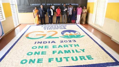 Over the course of six days, from July 20, 2023, to July 25, 2023, Dhanyaasri poured her heart and soul into creating a captivating mosaic that featured the words “G20 India 2023 – One Earth, One Family, One Future” with the G20 emblem depicted in all its splendor. Through this ingenious artwork, Dhanyaasri not only demonstrated her exceptional artistic prowess but also conveyed a profound message of global togetherness and hope. The mosaic served as a powerful reminder of the collective responsibility of G20 nations and the world at large to strive for a sustainable and inclusive future.