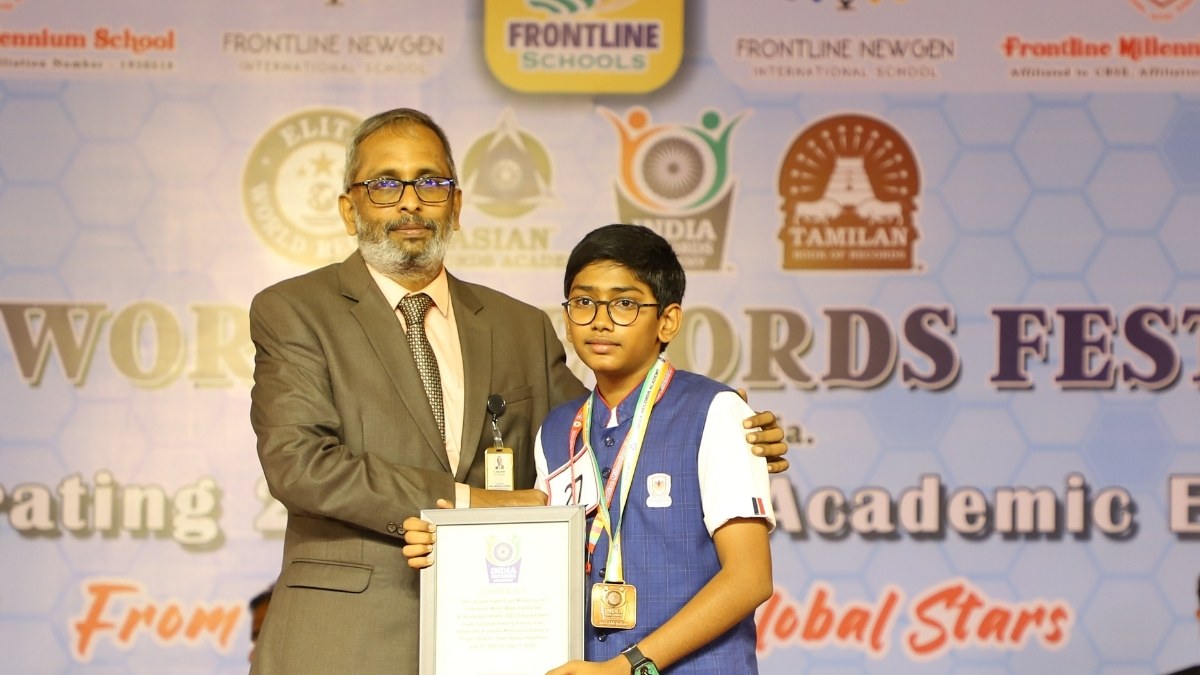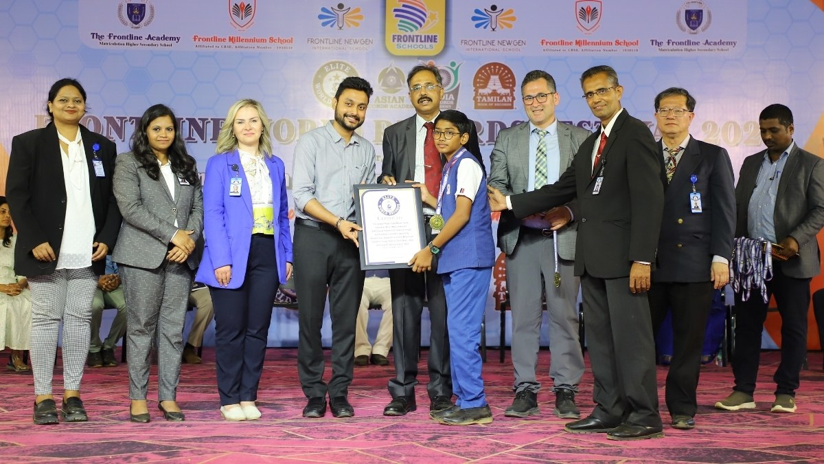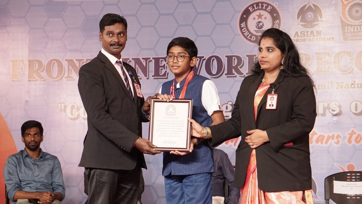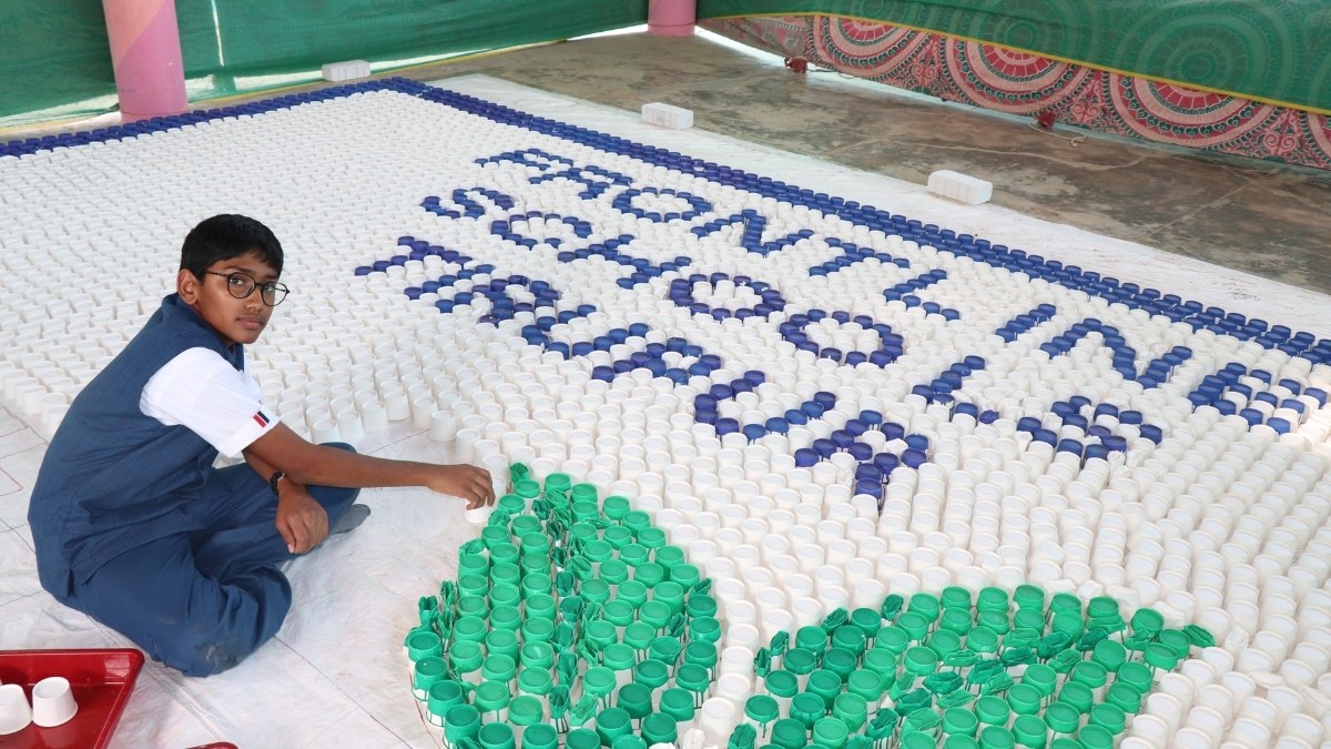 In a remarkable exhibit of environmental consciousness and artistic talent, Rohesh Jovi, a visionary of Grade VIII student from Frontline Millennium School achieved an astonishing world record for the Largest Paper Cups Mosaic by an Individual (Minor-Male), spanning an impressive 36.42 square meters.